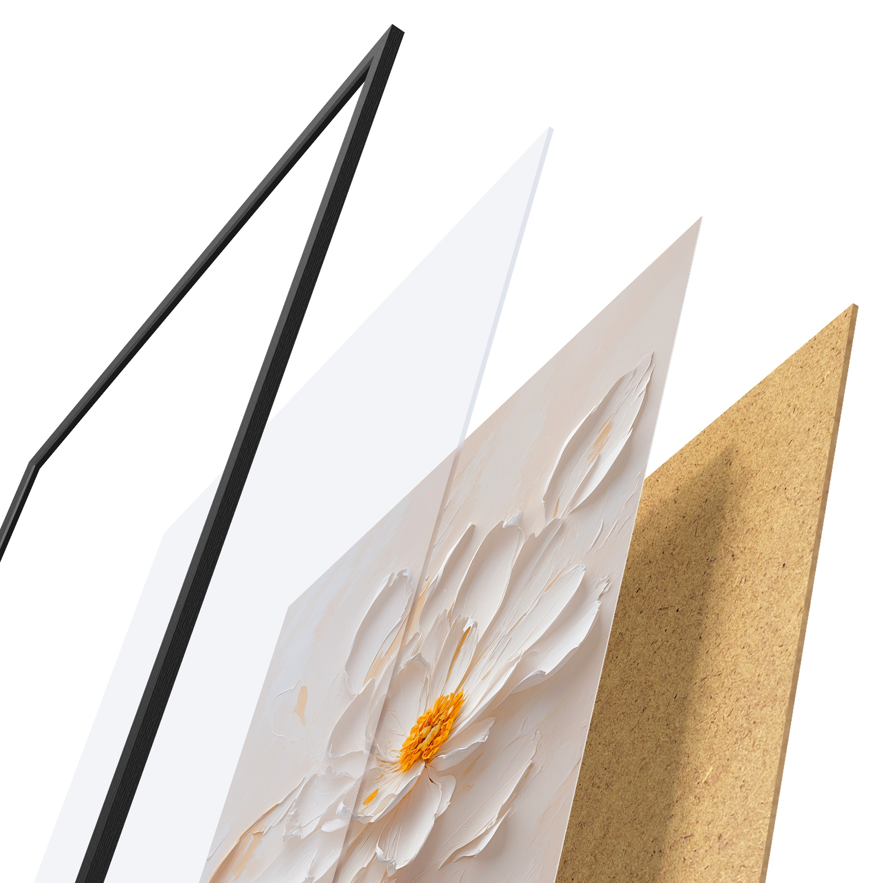 Plakāts sastāv no rāmja, pleksstikla, iespiestā attēla un skaidu plātnes pamatnes. Plakātu var uzreiz piekarināt pie sienas, pateicoties aizmugurē esošajiem stiprinājumiem.