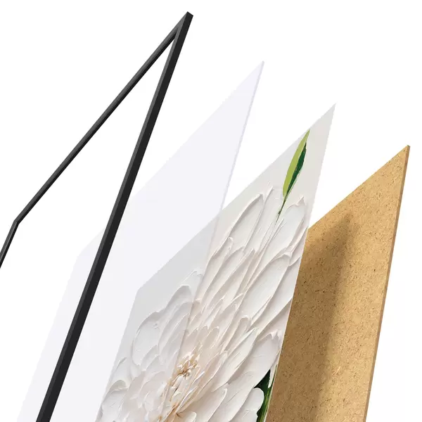 Plakāts sastāv no rāmja, pleksstikla, iespiestā attēla un skaidu plātnes pamatnes. Plakātu var uzreiz piekarināt pie sienas, pateicoties aizmugurē esošajiem stiprinājumiem.