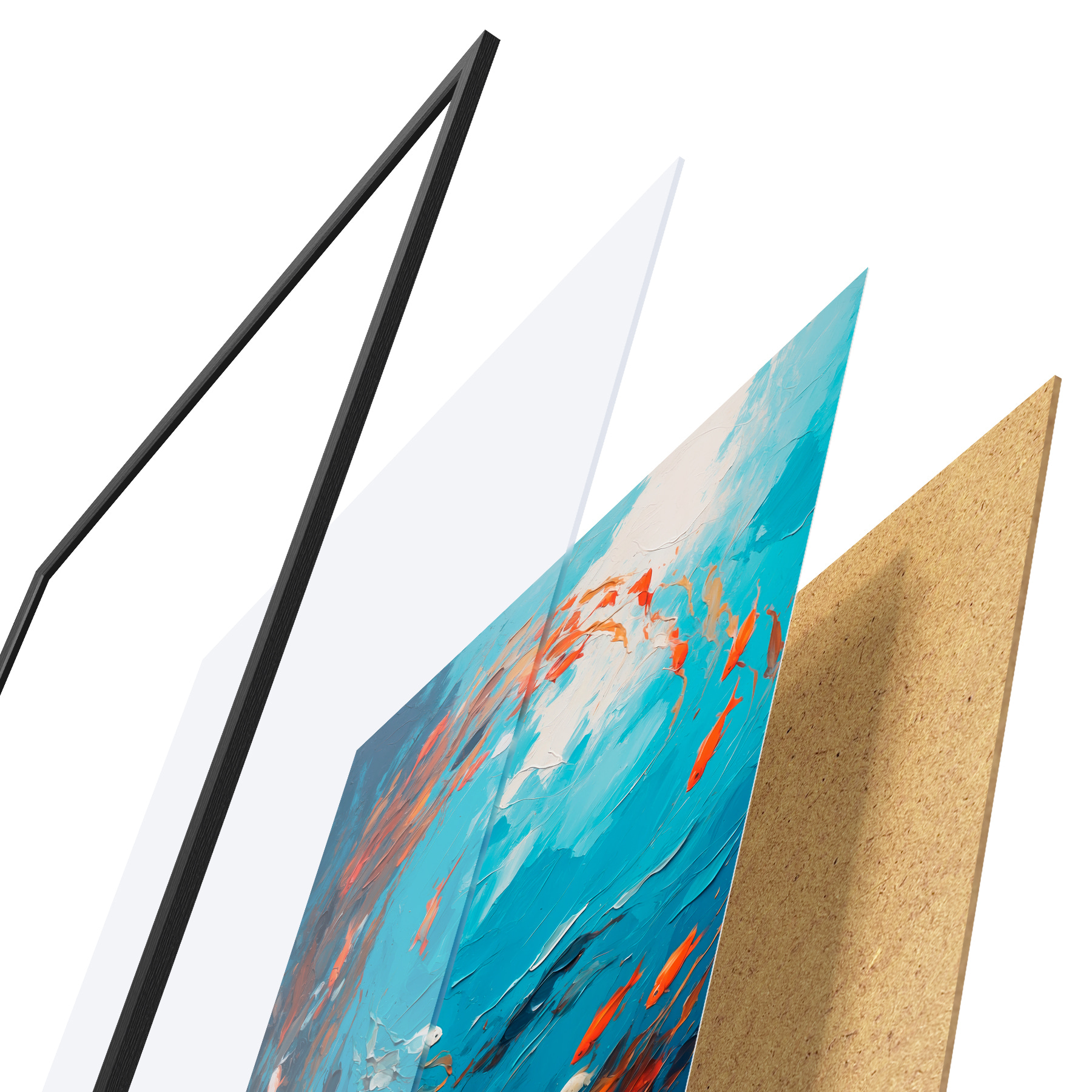 Plakāts sastāv no rāmja, pleksstikla, iespiestā attēla un skaidu plātnes pamatnes. Plakātu var uzreiz piekarināt pie sienas, pateicoties aizmugurē esošajiem stiprinājumiem.