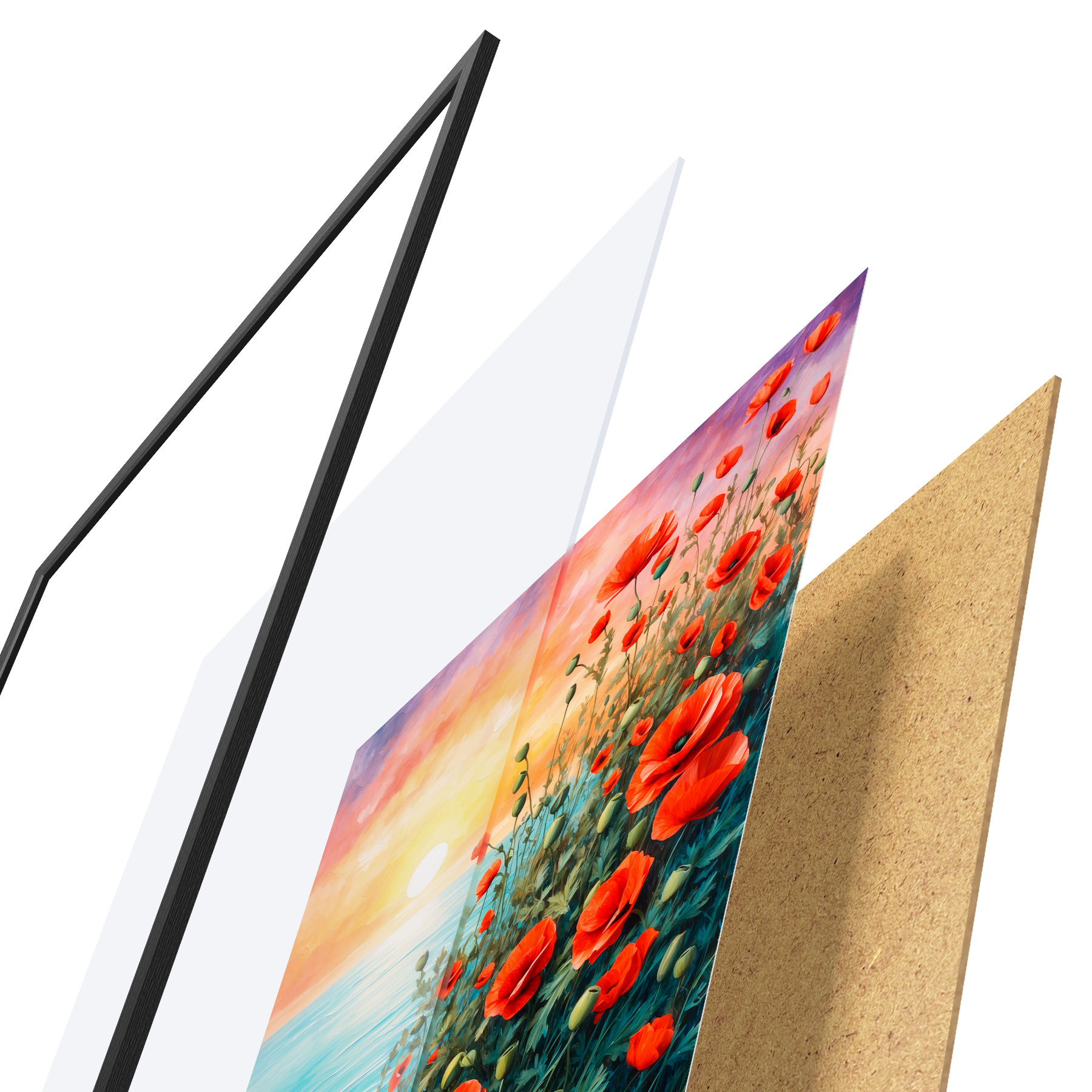 Plakāts sastāv no rāmja, pleksstikla, iespiestā attēla un skaidu plātnes pamatnes. Plakātu var uzreiz piekarināt pie sienas, pateicoties aizmugurē esošajiem stiprinājumiem.