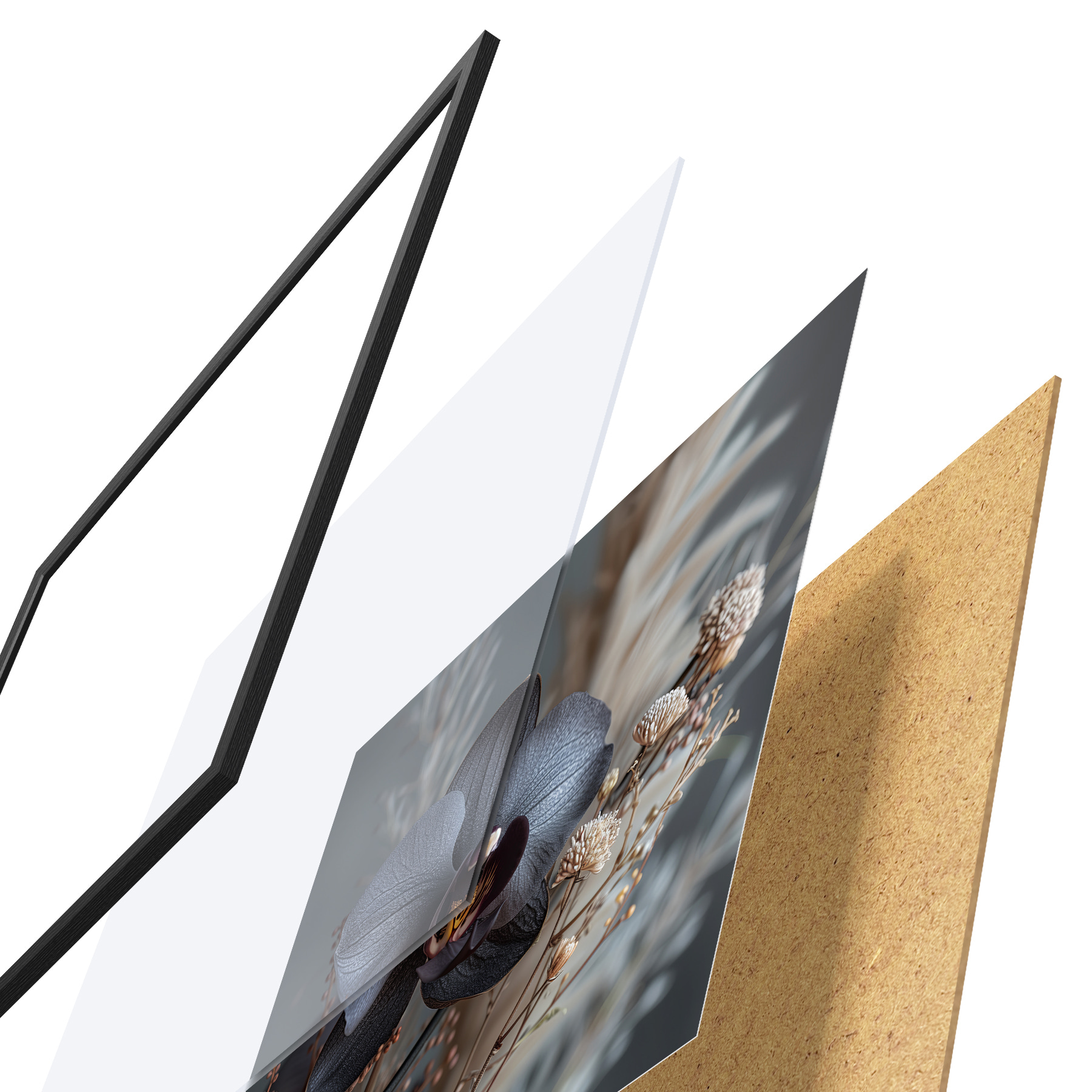 Plakāts sastāv no rāmja, pleksstikla, iespiestā attēla un skaidu plātnes pamatnes. Plakātu var uzreiz piekarināt pie sienas, pateicoties aizmugurē esošajiem stiprinājumiem.