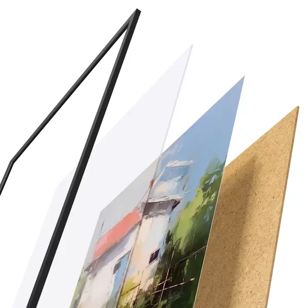 Plakāts sastāv no rāmja, pleksstikla, iespiestā attēla un skaidu plātnes pamatnes. Plakātu var uzreiz piekarināt pie sienas, pateicoties aizmugurē esošajiem stiprinājumiem.