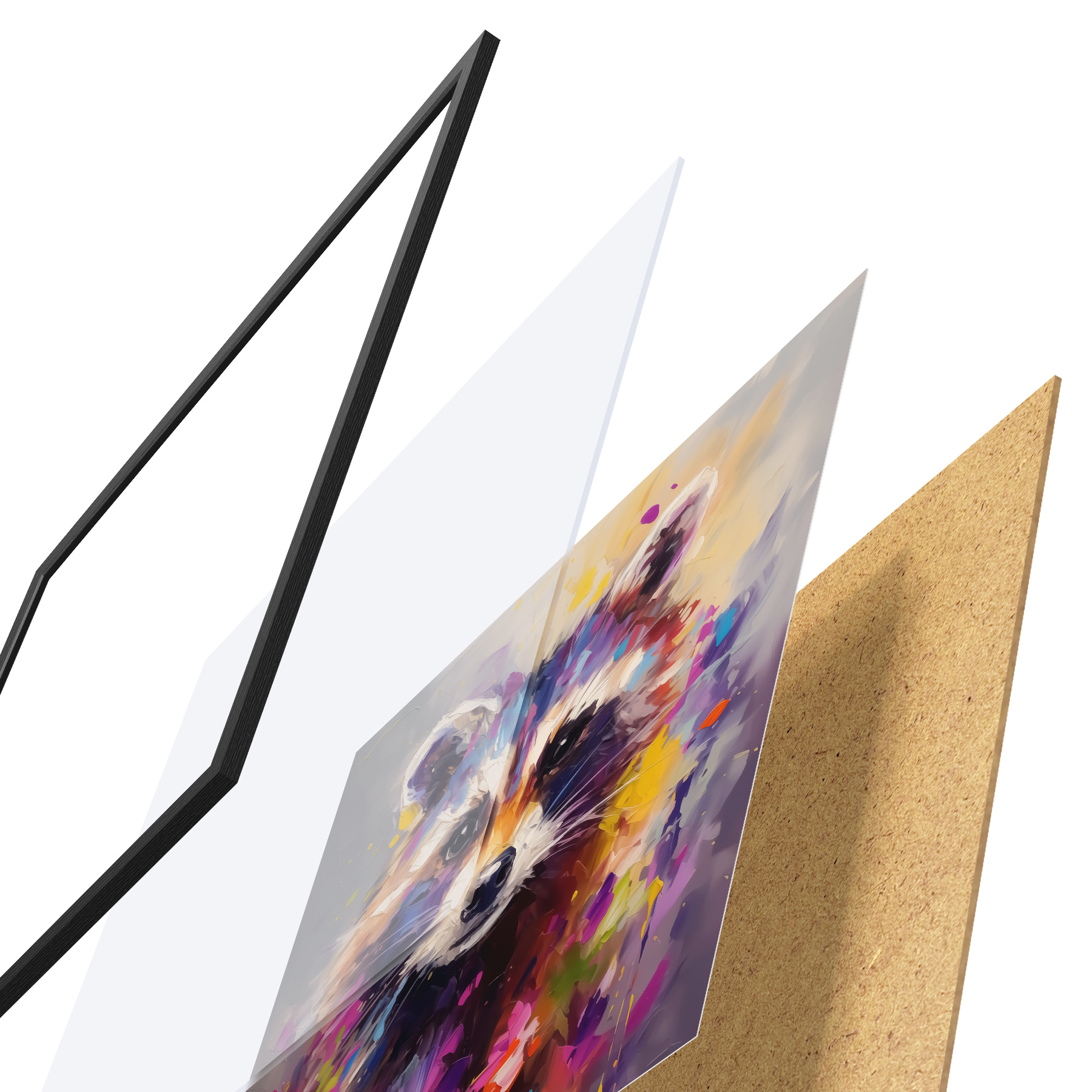 Plakāts sastāv no rāmja, pleksstikla, iespiestā attēla un skaidu plātnes pamatnes. Plakātu var uzreiz piekarināt pie sienas, pateicoties aizmugurē esošajiem stiprinājumiem.