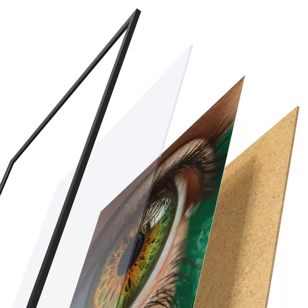 Plakāts sastāv no rāmja, pleksstikla, iespiestā attēla un skaidu plātnes pamatnes. Plakātu var uzreiz piekarināt pie sienas, pateicoties aizmugurē esošajiem stiprinājumiem.