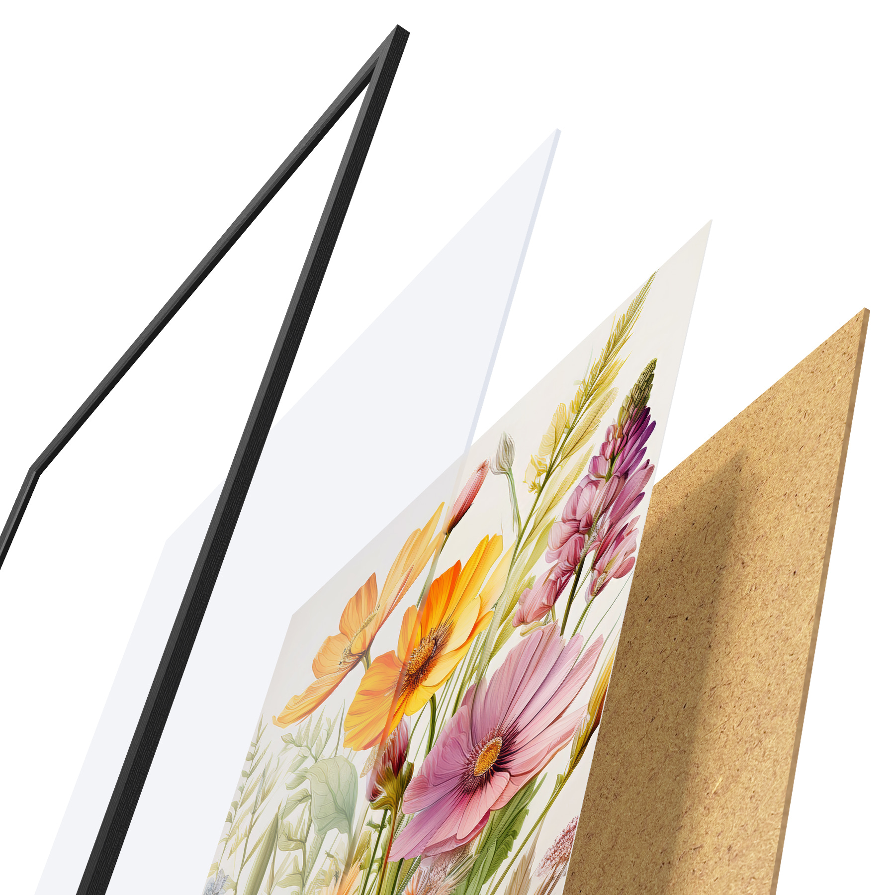 Plakāts sastāv no rāmja, pleksstikla, iespiestā attēla un skaidu plātnes pamatnes. Plakātu var uzreiz piekarināt pie sienas, pateicoties aizmugurē esošajiem stiprinājumiem.