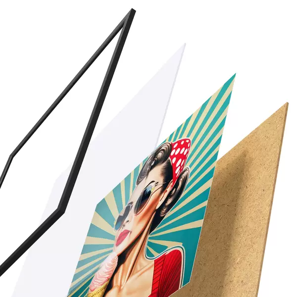 Plakāts sastāv no rāmja, pleksstikla, iespiestā attēla un skaidu plātnes pamatnes. Plakātu var uzreiz piekarināt pie sienas, pateicoties aizmugurē esošajiem stiprinājumiem.