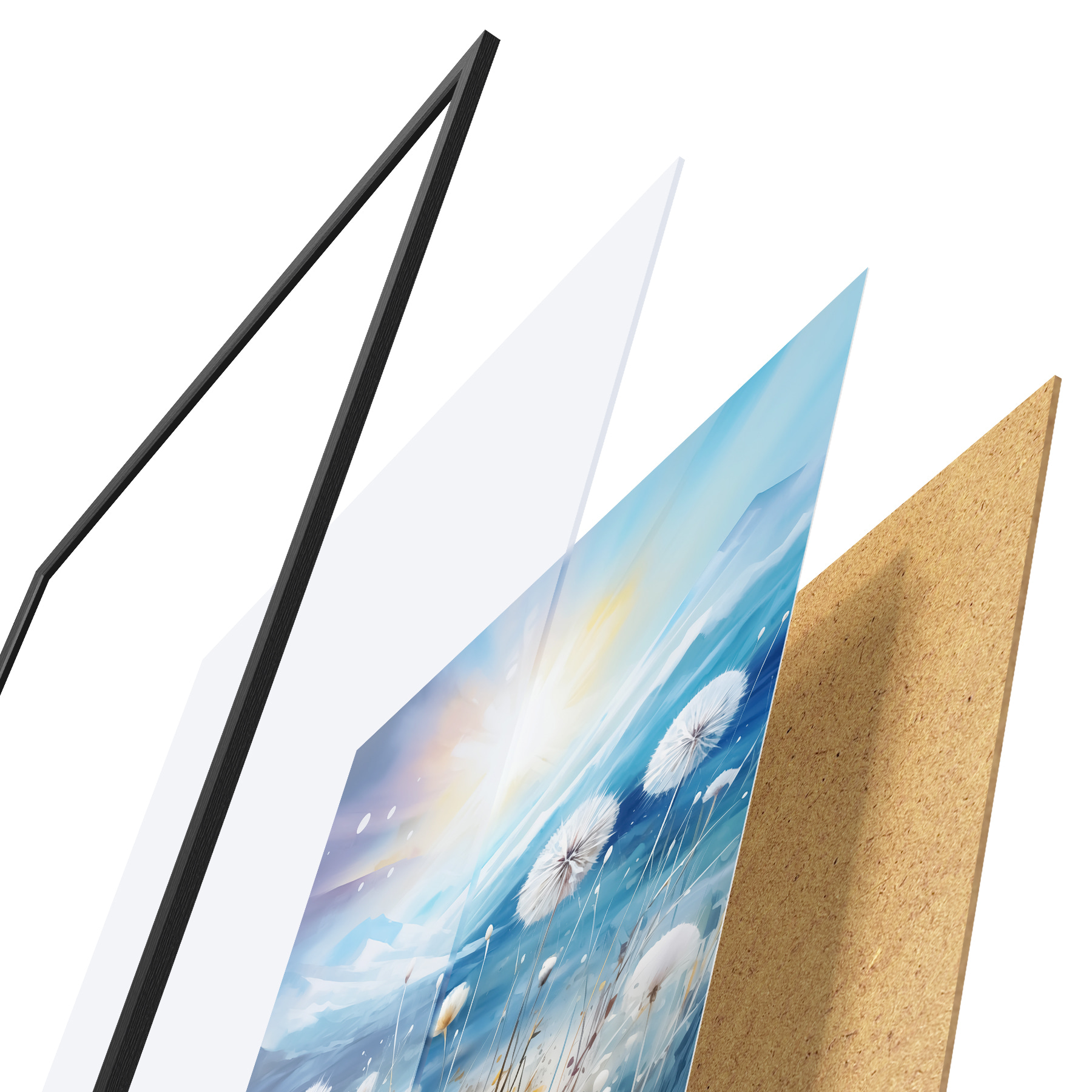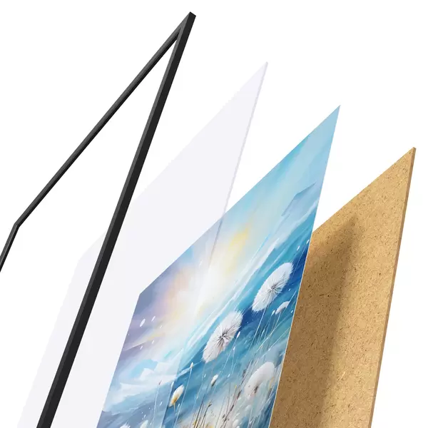 Plakāts sastāv no rāmja, pleksstikla, iespiestā attēla un skaidu plātnes pamatnes. Plakātu var uzreiz piekarināt pie sienas, pateicoties aizmugurē esošajiem stiprinājumiem.