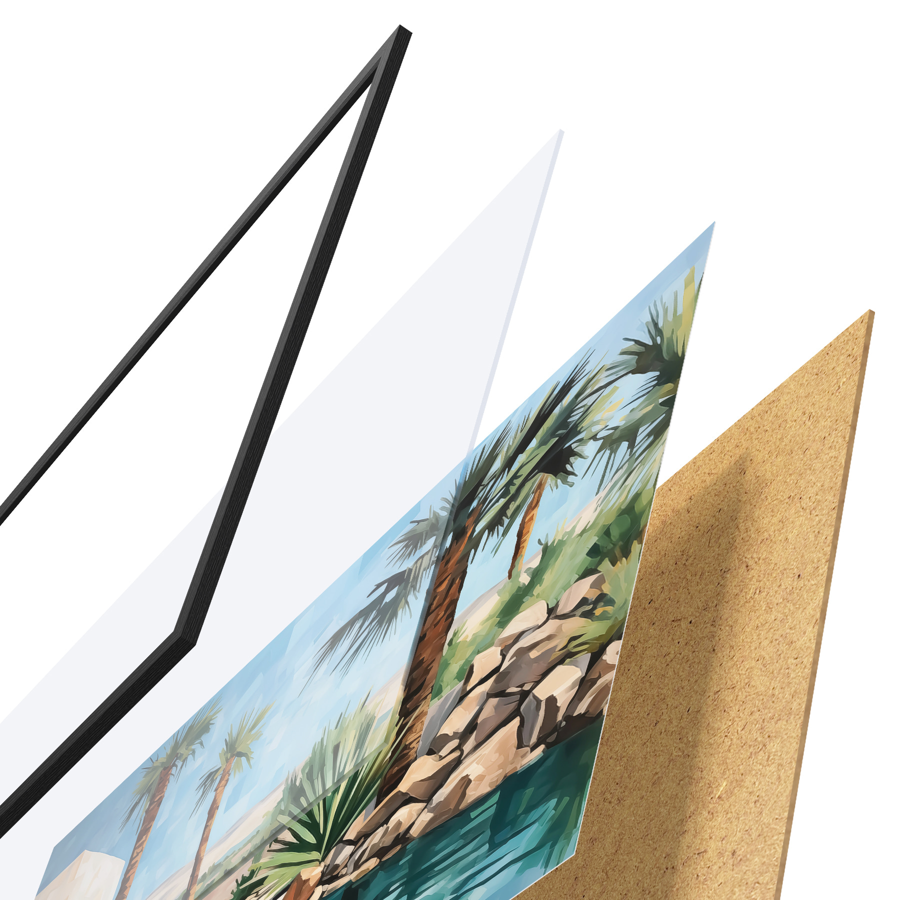 Plakāts sastāv no rāmja, pleksstikla, iespiestā attēla un skaidu plātnes pamatnes. Plakātu var uzreiz piekarināt pie sienas, pateicoties aizmugurē esošajiem stiprinājumiem.
