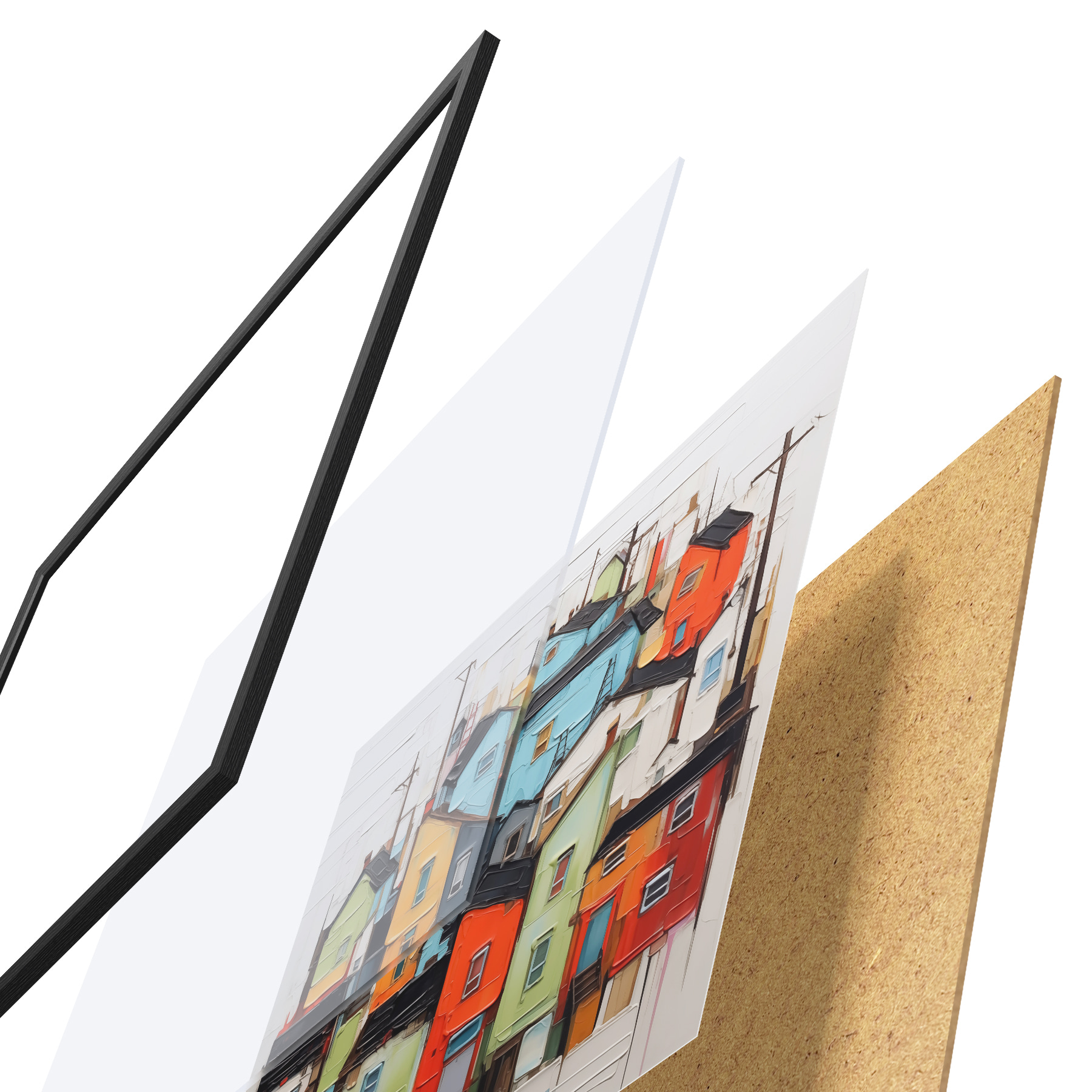 Plakāts sastāv no rāmja, pleksstikla, iespiestā attēla un skaidu plātnes pamatnes. Plakātu var uzreiz piekarināt pie sienas, pateicoties aizmugurē esošajiem stiprinājumiem.
