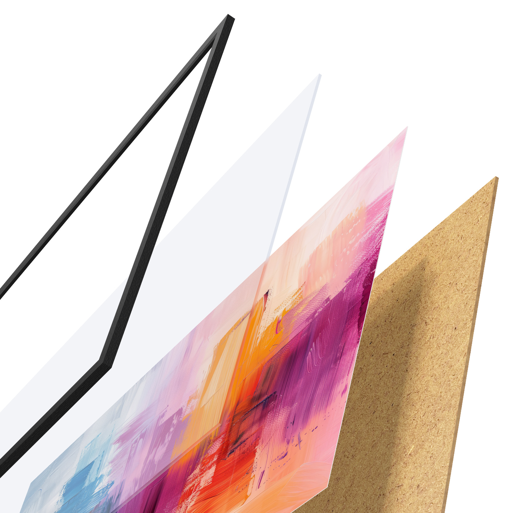 Plakāts sastāv no rāmja, pleksstikla, iespiestā attēla un skaidu plātnes pamatnes. Plakātu var uzreiz piekarināt pie sienas, pateicoties aizmugurē esošajiem stiprinājumiem.