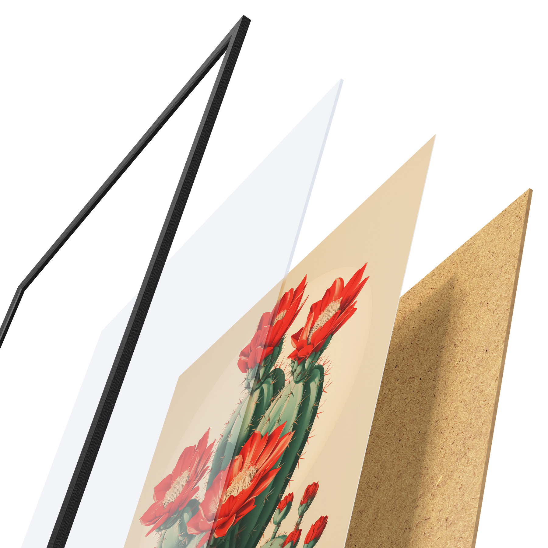 Plakāts sastāv no rāmja, pleksstikla, iespiestā attēla un skaidu plātnes pamatnes. Plakātu var uzreiz piekarināt pie sienas, pateicoties aizmugurē esošajiem stiprinājumiem.