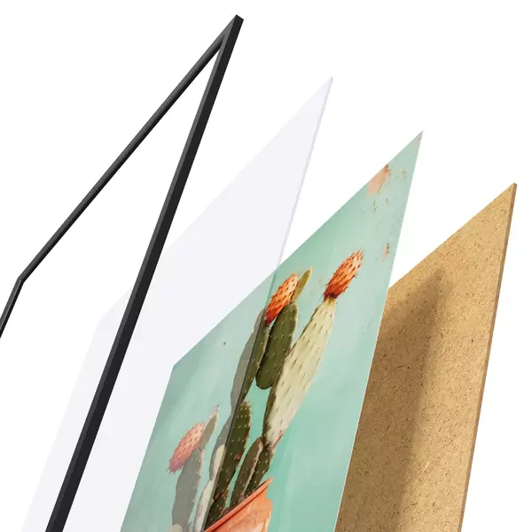 Plakāts sastāv no rāmja, pleksstikla, iespiestā attēla un skaidu plātnes pamatnes. Plakātu var uzreiz piekarināt pie sienas, pateicoties aizmugurē esošajiem stiprinājumiem.