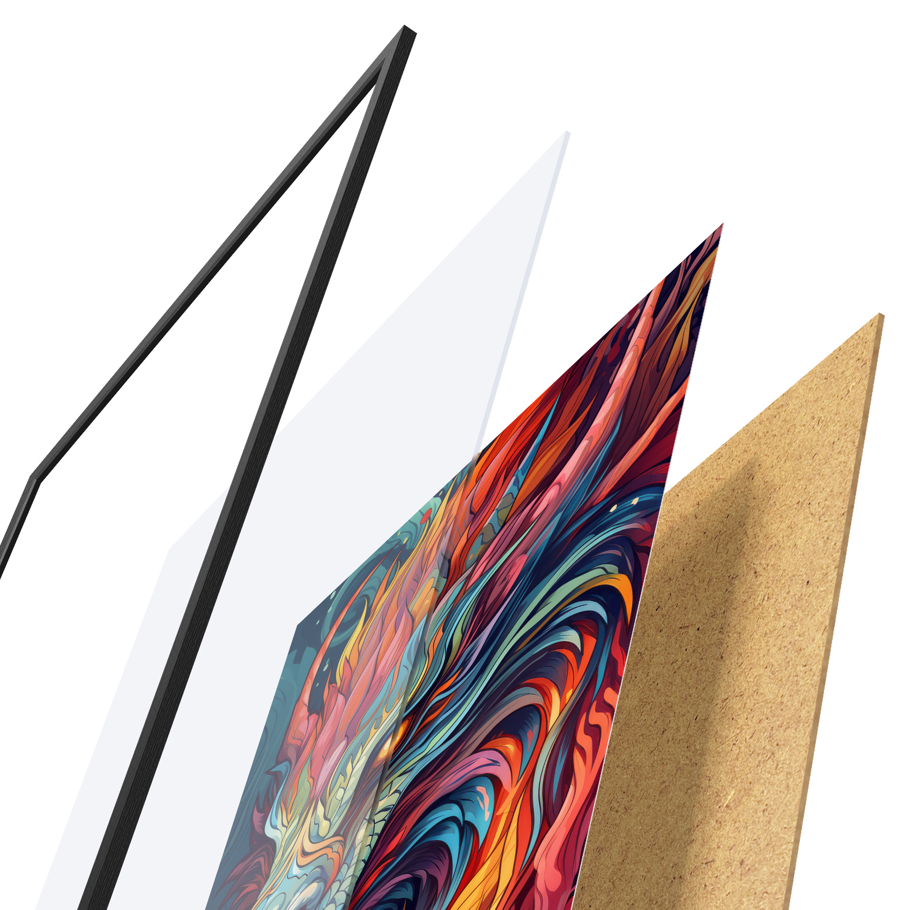 Plakāts sastāv no rāmja, pleksstikla, iespiestā attēla un skaidu plātnes pamatnes. Plakātu var uzreiz piekarināt pie sienas, pateicoties aizmugurē esošajiem stiprinājumiem.