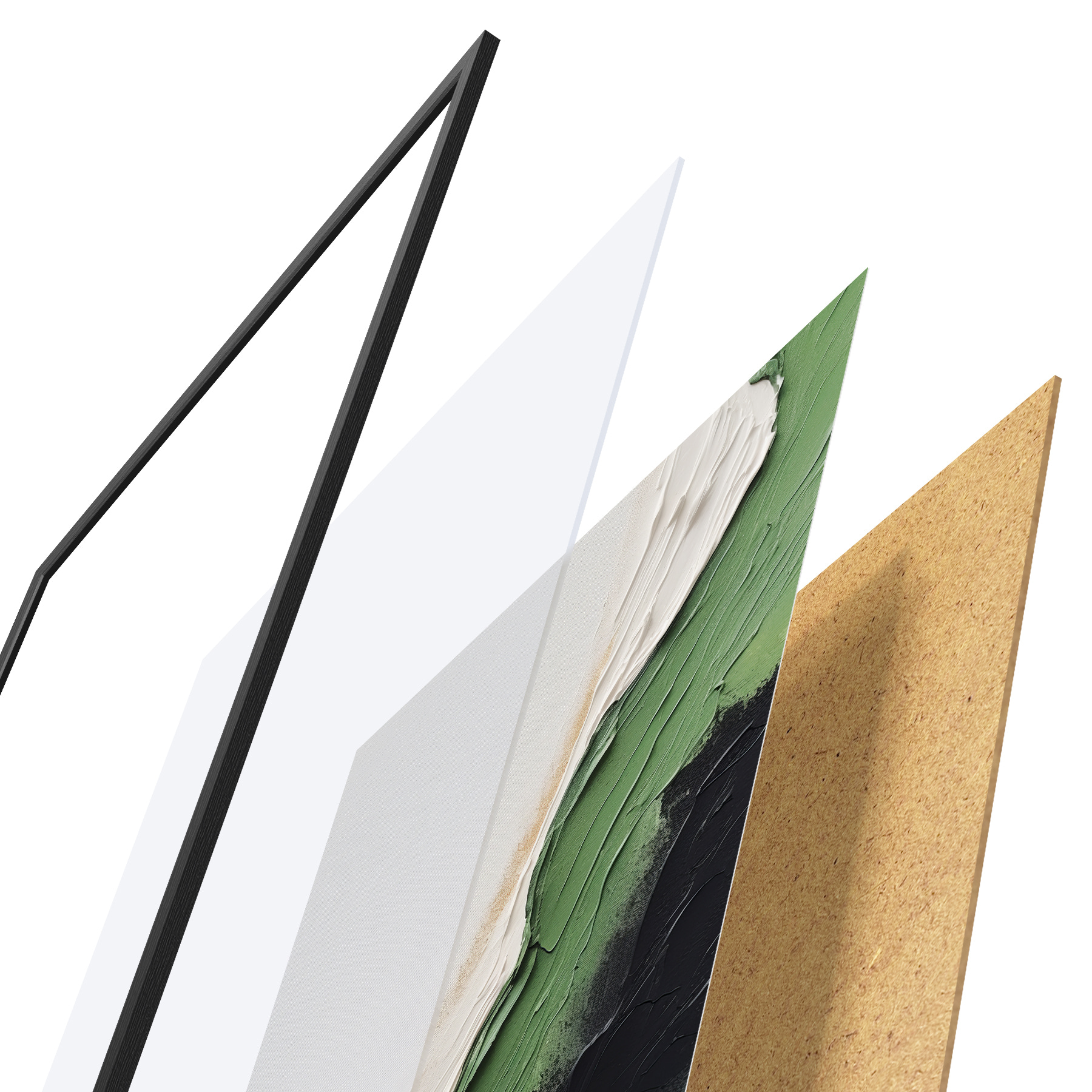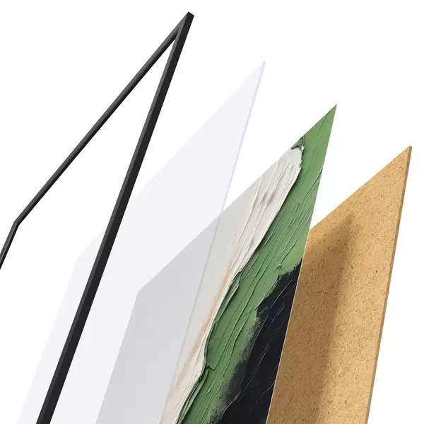Plakāts sastāv no rāmja, pleksstikla, iespiestā attēla un skaidu plātnes pamatnes. Plakātu var uzreiz piekarināt pie sienas, pateicoties aizmugurē esošajiem stiprinājumiem.
