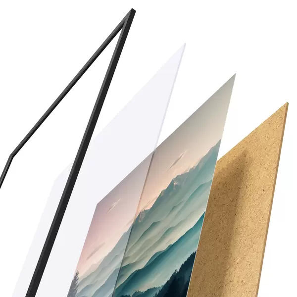 Plakāts sastāv no rāmja, pleksstikla, iespiestā attēla un skaidu plātnes pamatnes. Plakātu var uzreiz piekarināt pie sienas, pateicoties aizmugurē esošajiem stiprinājumiem.