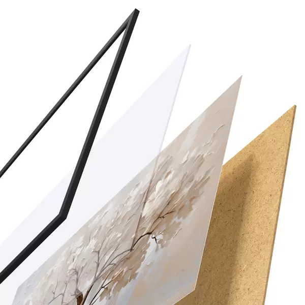 Plakāts sastāv no rāmja, pleksstikla, iespiestā attēla un skaidu plātnes pamatnes. Plakātu var uzreiz piekarināt pie sienas, pateicoties aizmugurē esošajiem stiprinājumiem.