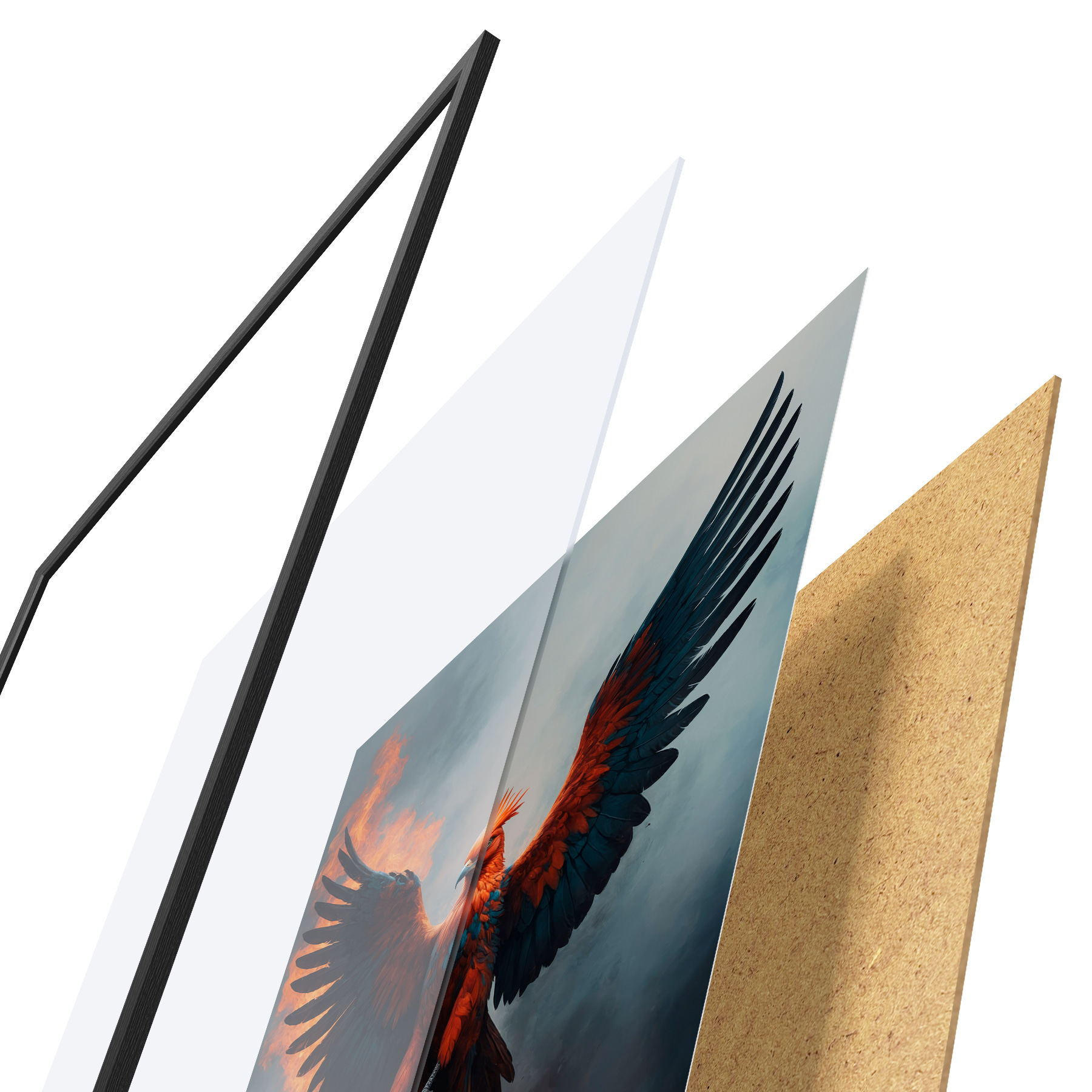 Plakāts sastāv no rāmja, pleksstikla, iespiestā attēla un skaidu plātnes pamatnes. Plakātu var uzreiz piekarināt pie sienas, pateicoties aizmugurē esošajiem stiprinājumiem.