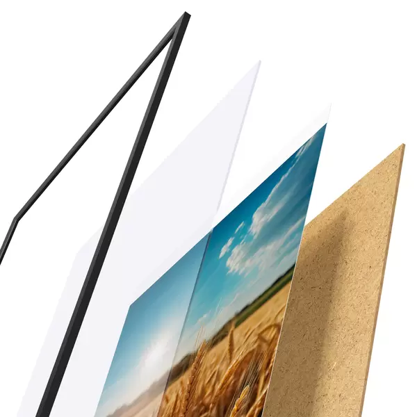 Plakāts sastāv no rāmja, pleksstikla, iespiestā attēla un skaidu plātnes pamatnes. Plakātu var uzreiz piekarināt pie sienas, pateicoties aizmugurē esošajiem stiprinājumiem.