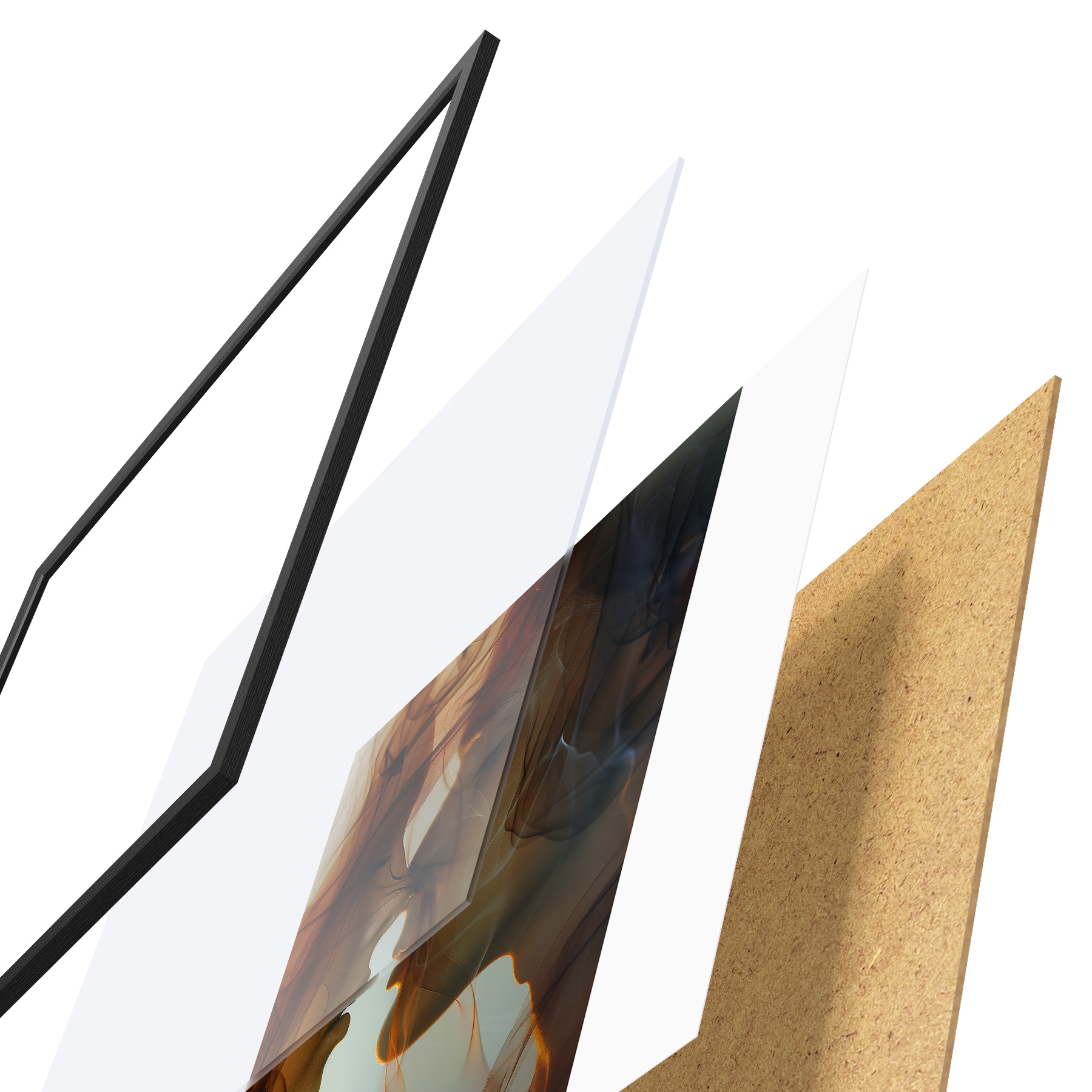 Plakāts sastāv no rāmja, pleksstikla, iespiestā attēla un skaidu plātnes pamatnes. Plakātu var uzreiz piekarināt pie sienas, pateicoties aizmugurē esošajiem stiprinājumiem.