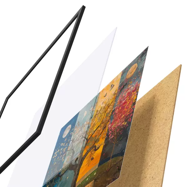 Plakāts sastāv no rāmja, pleksstikla, iespiestā attēla un skaidu plātnes pamatnes. Plakātu var uzreiz piekarināt pie sienas, pateicoties aizmugurē esošajiem stiprinājumiem.
