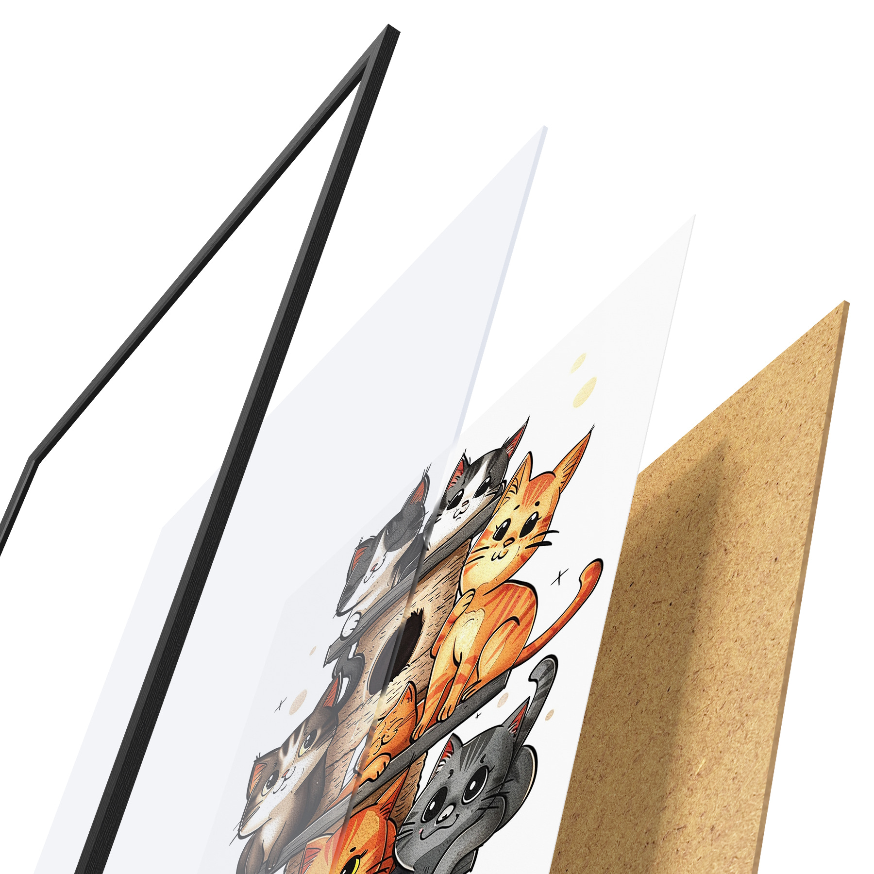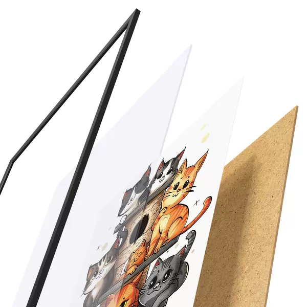 Plakāts sastāv no rāmja, pleksstikla, iespiestā attēla un skaidu plātnes pamatnes. Plakātu var uzreiz piekarināt pie sienas, pateicoties aizmugurē esošajiem stiprinājumiem.