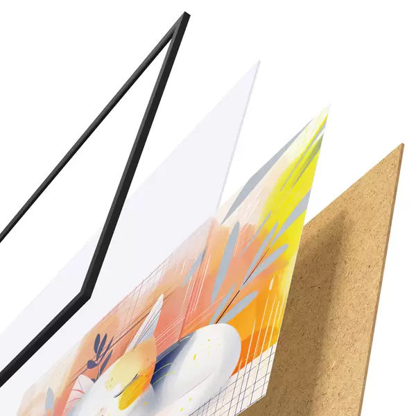 Plakāts sastāv no rāmja, pleksstikla, iespiestā attēla un skaidu plātnes pamatnes. Plakātu var uzreiz piekarināt pie sienas, pateicoties aizmugurē esošajiem stiprinājumiem.