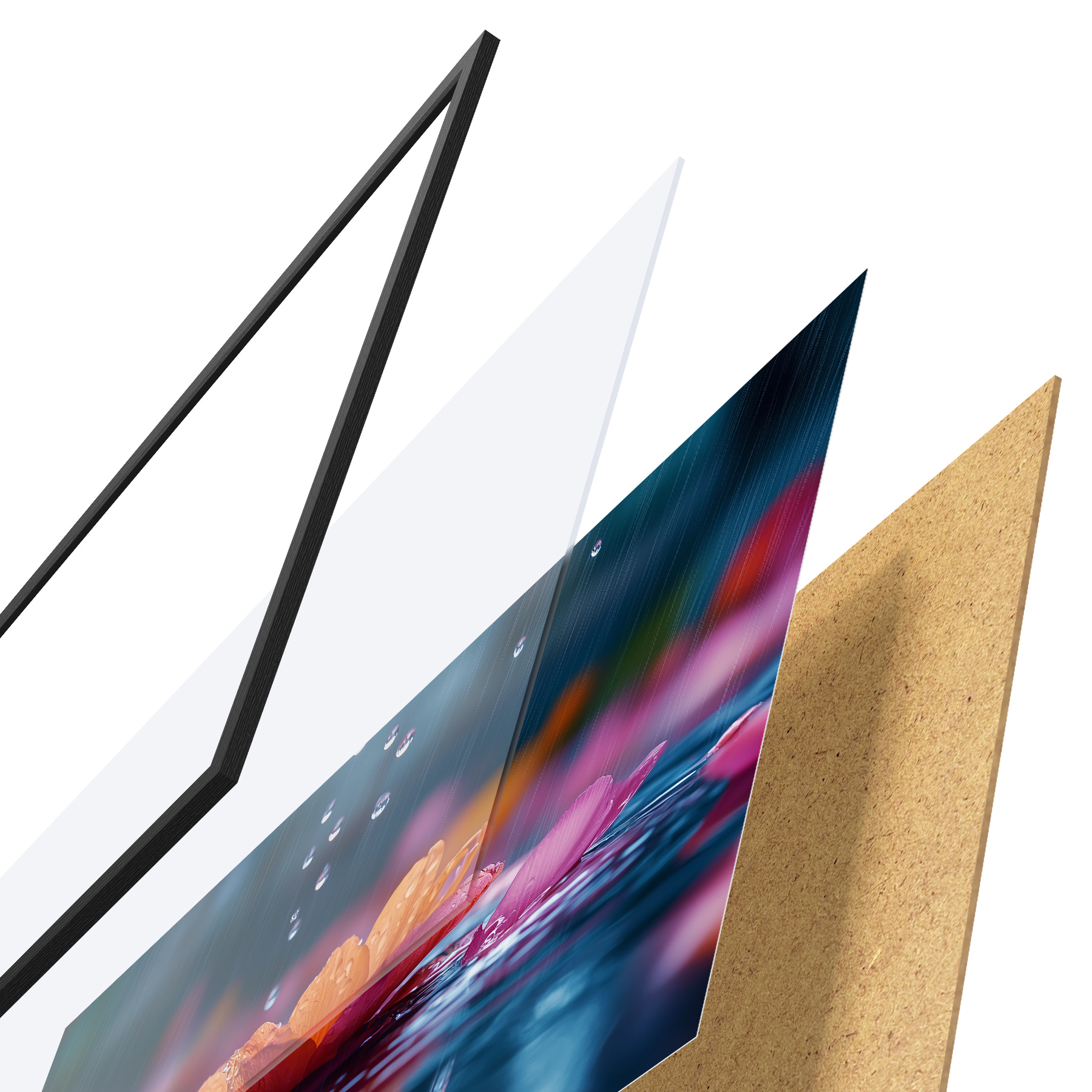 Plakāts sastāv no rāmja, pleksstikla, iespiestā attēla un skaidu plātnes pamatnes. Plakātu var uzreiz piekarināt pie sienas, pateicoties aizmugurē esošajiem stiprinājumiem.