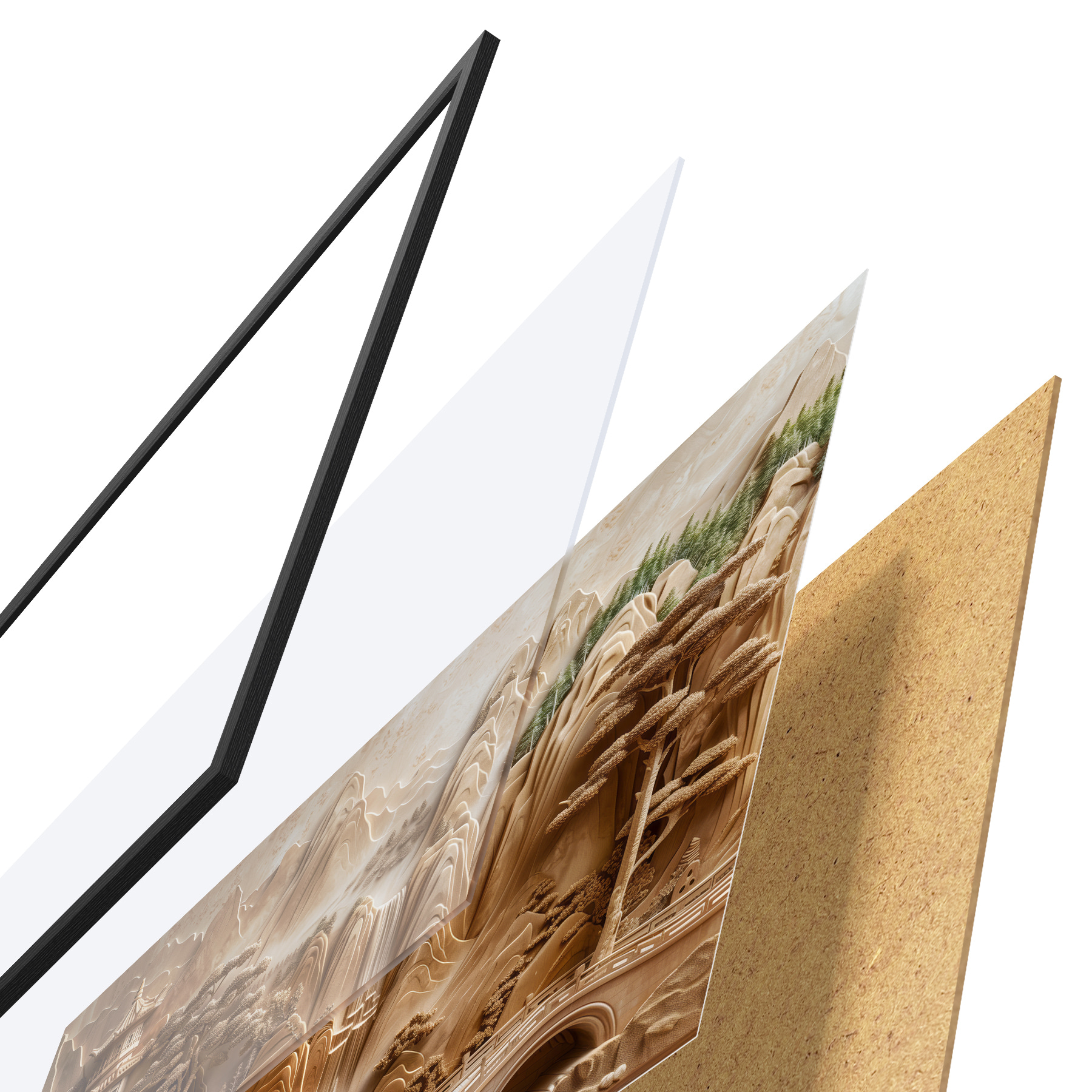 Plakāts sastāv no rāmja, pleksstikla, iespiestā attēla un skaidu plātnes pamatnes. Plakātu var uzreiz piekarināt pie sienas, pateicoties aizmugurē esošajiem stiprinājumiem.