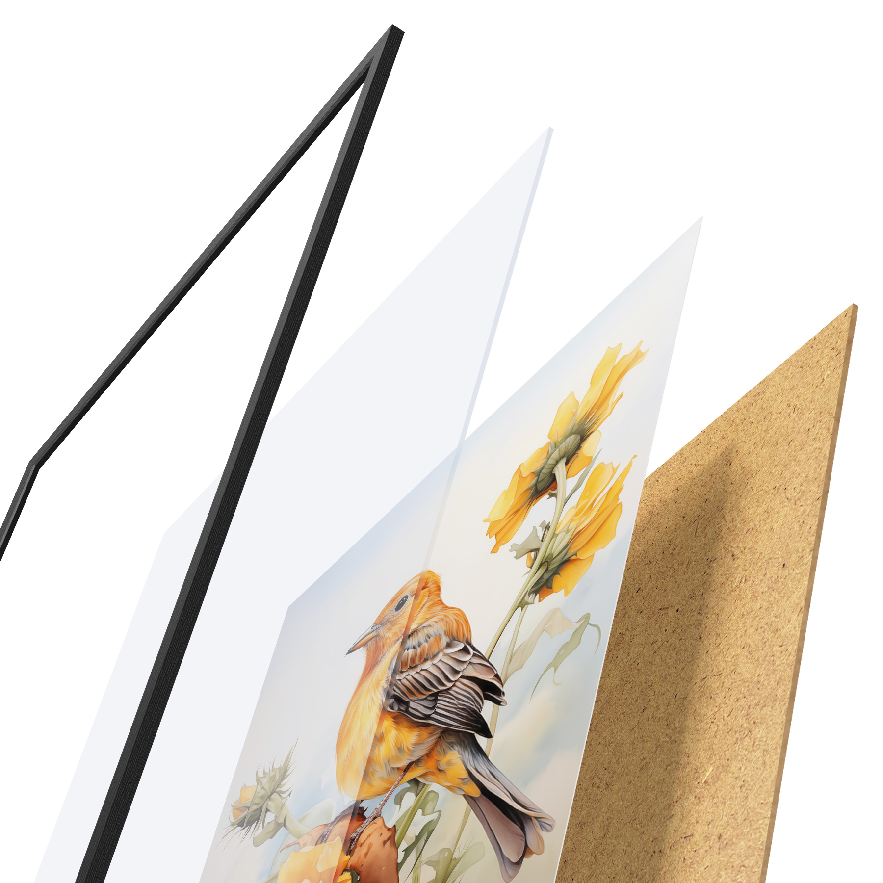 Plakāts sastāv no rāmja, pleksstikla, iespiestā attēla un skaidu plātnes pamatnes. Plakātu var uzreiz piekarināt pie sienas, pateicoties aizmugurē esošajiem stiprinājumiem.