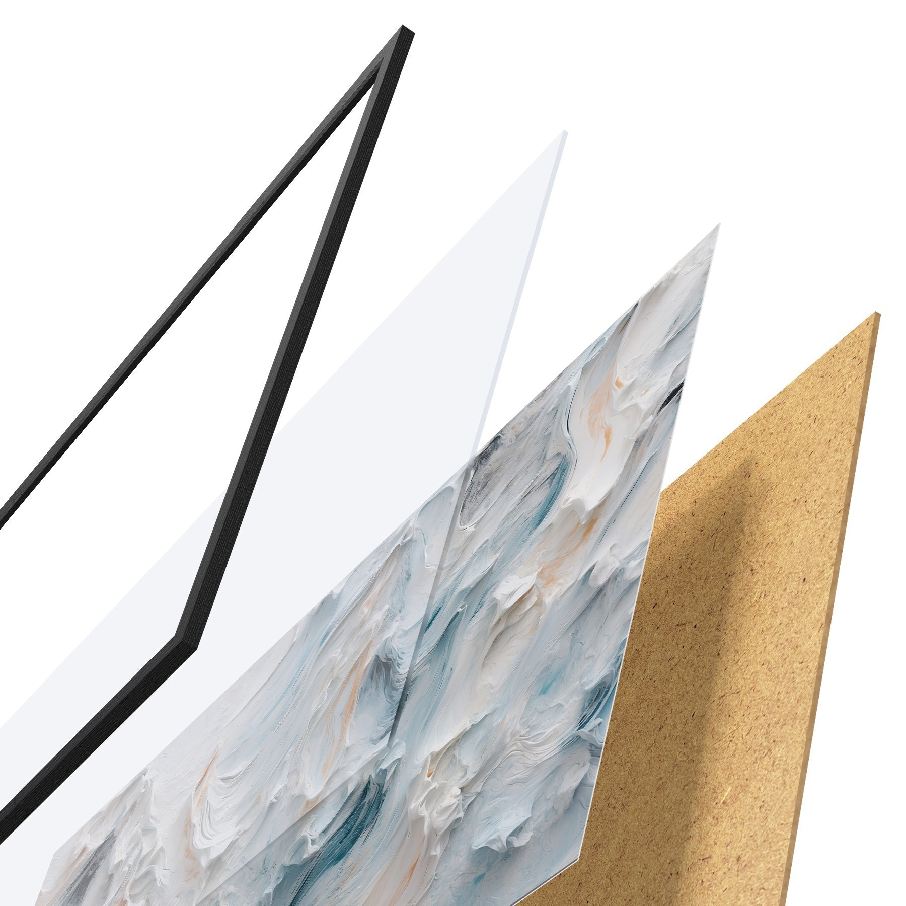 Plakāts sastāv no rāmja, pleksstikla, iespiestā attēla un skaidu plātnes pamatnes. Plakātu var uzreiz piekarināt pie sienas, pateicoties aizmugurē esošajiem stiprinājumiem.