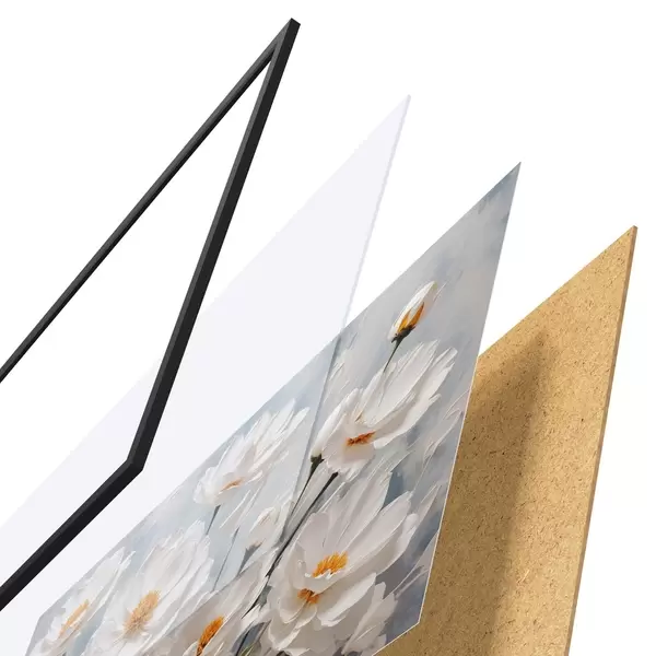 Plakāts sastāv no rāmja, pleksstikla, iespiestā attēla un skaidu plātnes pamatnes. Plakātu var uzreiz piekarināt pie sienas, pateicoties aizmugurē esošajiem stiprinājumiem.