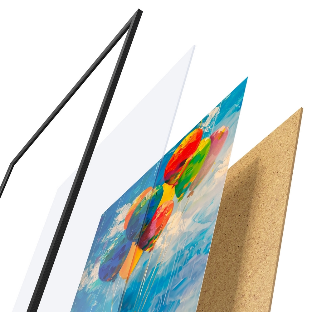 Plakāts sastāv no rāmja, pleksstikla, iespiestā attēla un skaidu plātnes pamatnes. Plakātu var uzreiz piekarināt pie sienas, pateicoties aizmugurē esošajiem stiprinājumiem.