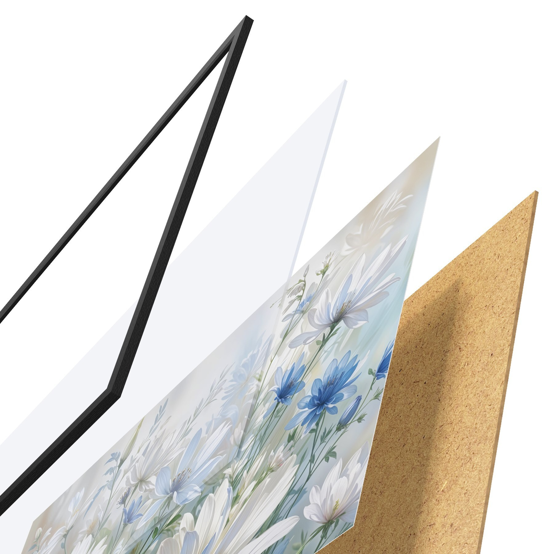 SākumlapaPlakātu katalogsPlakāti ziediPlakāts Baltu un zilu margrietiņām līdzīgu ziedu lauks ar zaļām lapām un stublājiem uz maiga, izplūduša fona Nr f41086
