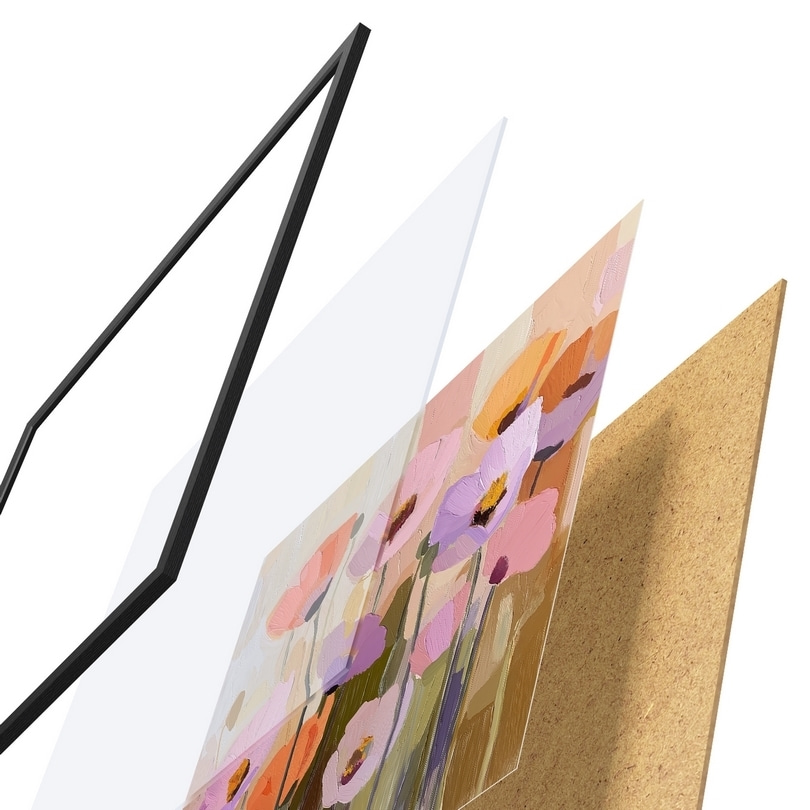 Plakāts sastāv no rāmja, pleksstikla, iespiestā attēla un skaidu plātnes pamatnes. Plakātu var uzreiz piekarināt pie sienas, pateicoties aizmugurē esošajiem stiprinājumiem.