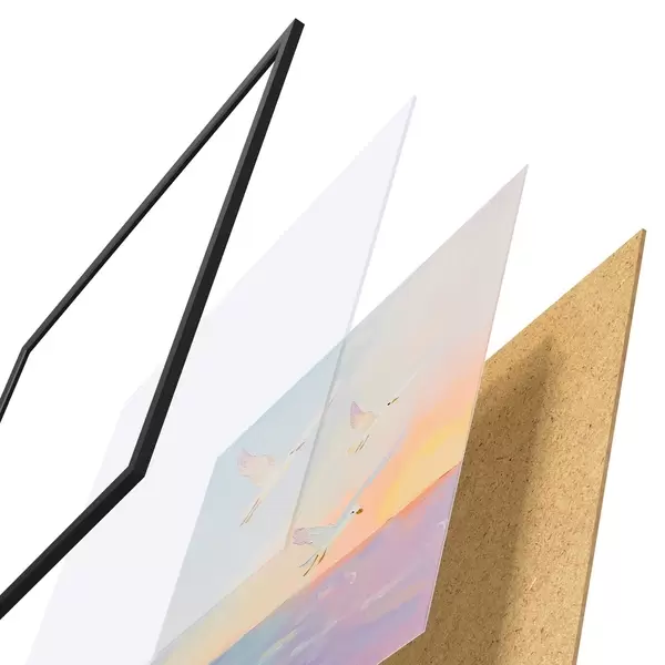 Plakāts sastāv no rāmja, pleksstikla, iespiestā attēla un skaidu plātnes pamatnes. Plakātu var uzreiz piekarināt pie sienas, pateicoties aizmugurē esošajiem stiprinājumiem.