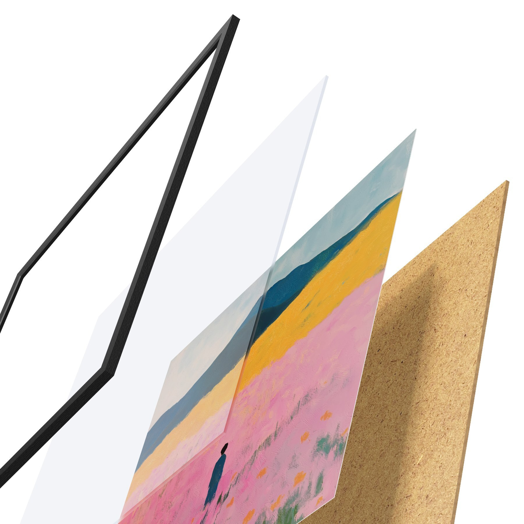 Plakāts sastāv no rāmja, pleksstikla, iespiestā attēla un skaidu plātnes pamatnes. Plakātu var uzreiz piekarināt pie sienas, pateicoties aizmugurē esošajiem stiprinājumiem.
