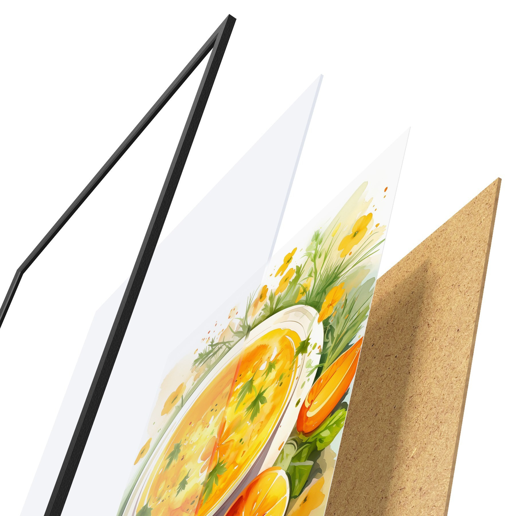 Plakāts sastāv no rāmja, pleksstikla, iespiestā attēla un skaidu plātnes pamatnes. Plakātu var uzreiz piekarināt pie sienas, pateicoties aizmugurē esošajiem stiprinājumiem.