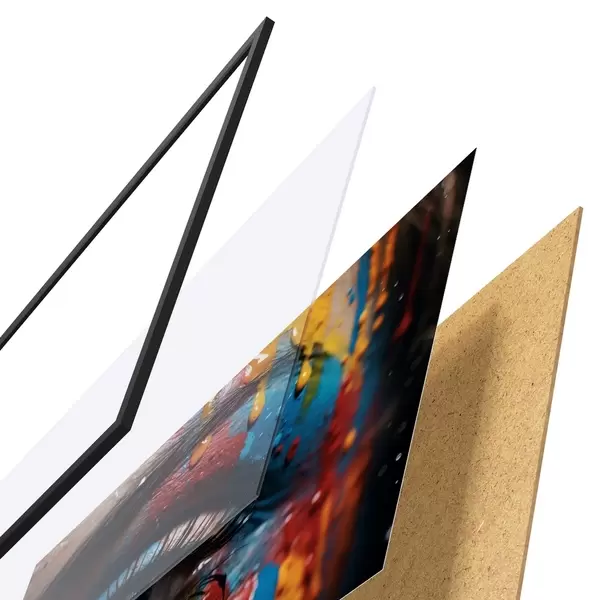 Plakāts sastāv no rāmja, pleksstikla, iespiestā attēla un skaidu plātnes pamatnes. Plakātu var uzreiz piekarināt pie sienas, pateicoties aizmugurē esošajiem stiprinājumiem.