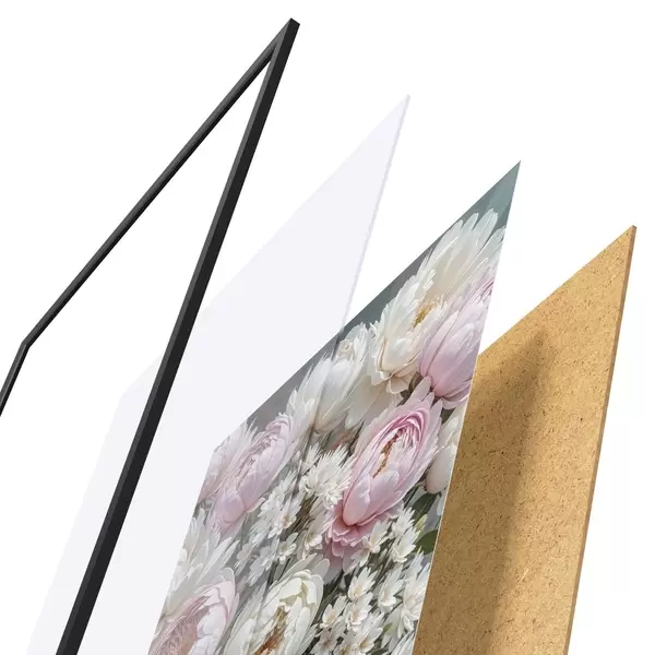 Plakāts sastāv no rāmja, pleksstikla, iespiestā attēla un skaidu plātnes pamatnes. Plakātu var uzreiz piekarināt pie sienas, pateicoties aizmugurē esošajiem stiprinājumiem.