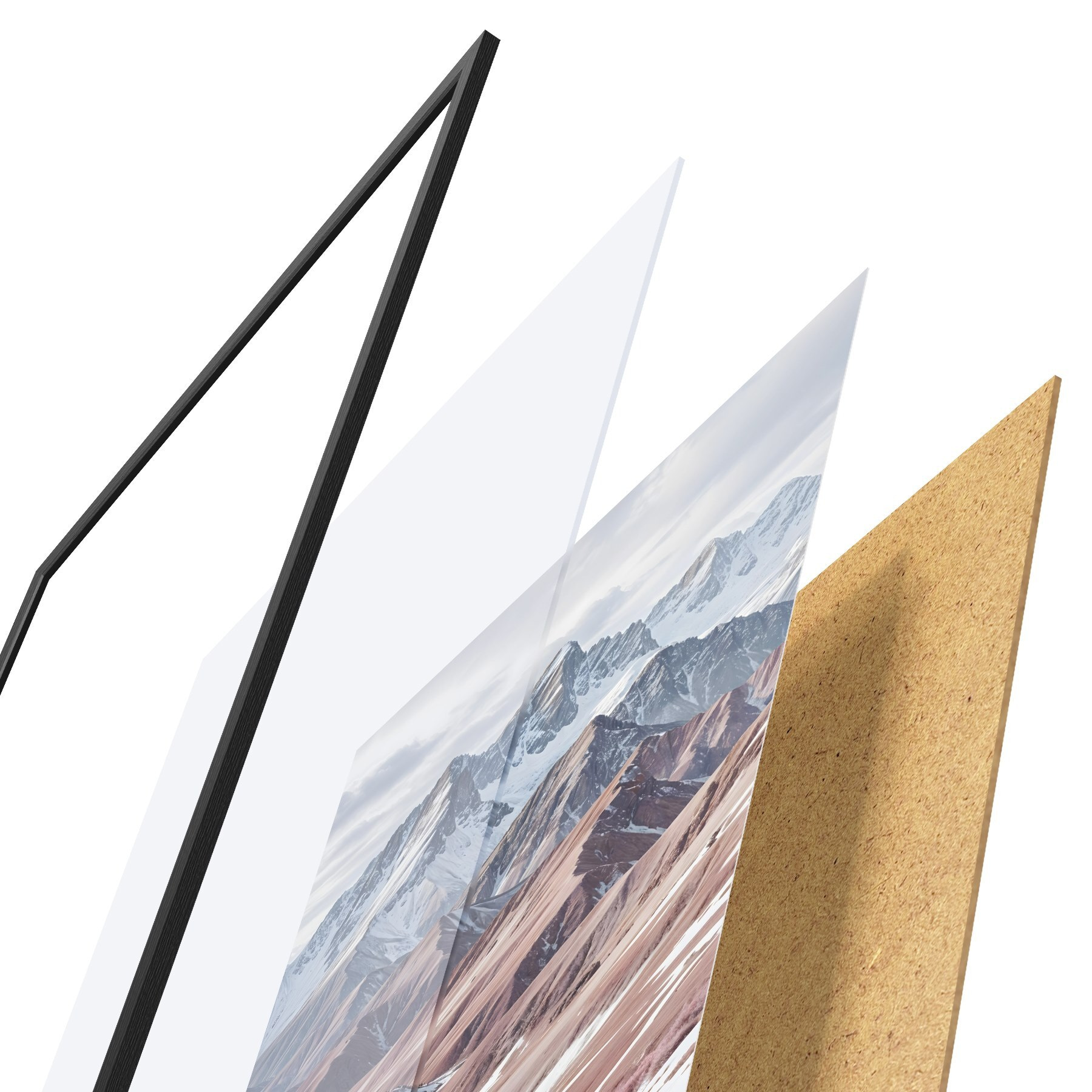 Plakāts sastāv no rāmja, pleksstikla, iespiestā attēla un skaidu plātnes pamatnes. Plakātu var uzreiz piekarināt pie sienas, pateicoties aizmugurē esošajiem stiprinājumiem.