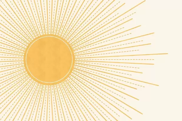 Plakāts Spilgti dzeltena saule ar starojošiem saules stariem uz gaiša fona, kas rada siltu un saulainu atmosfēru Nr f41268