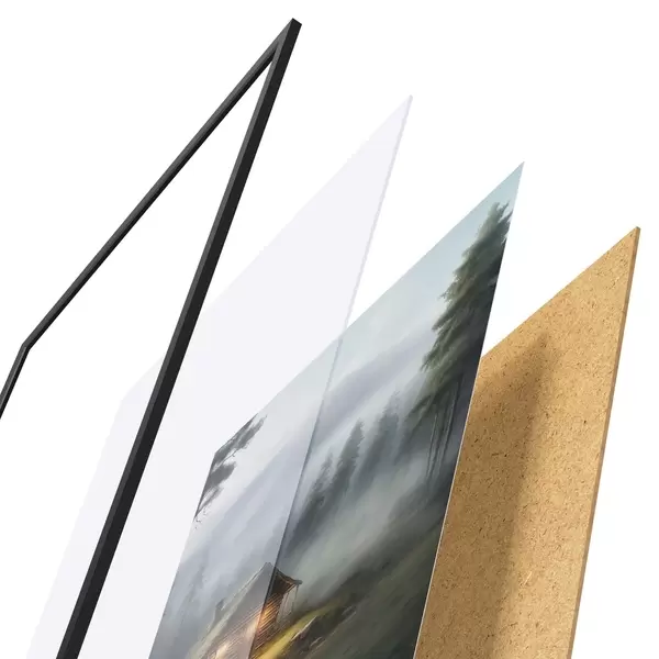 Plakāts sastāv no rāmja, pleksstikla, iespiestā attēla un skaidu plātnes pamatnes. Plakātu var uzreiz piekarināt pie sienas, pateicoties aizmugurē esošajiem stiprinājumiem.