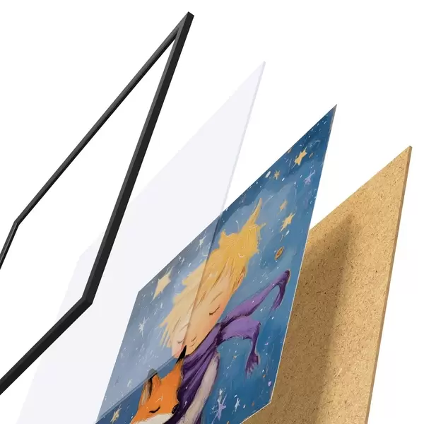 Plakāts sastāv no rāmja, pleksstikla, iespiestā attēla un skaidu plātnes pamatnes. Plakātu var uzreiz piekarināt pie sienas, pateicoties aizmugurē esošajiem stiprinājumiem.