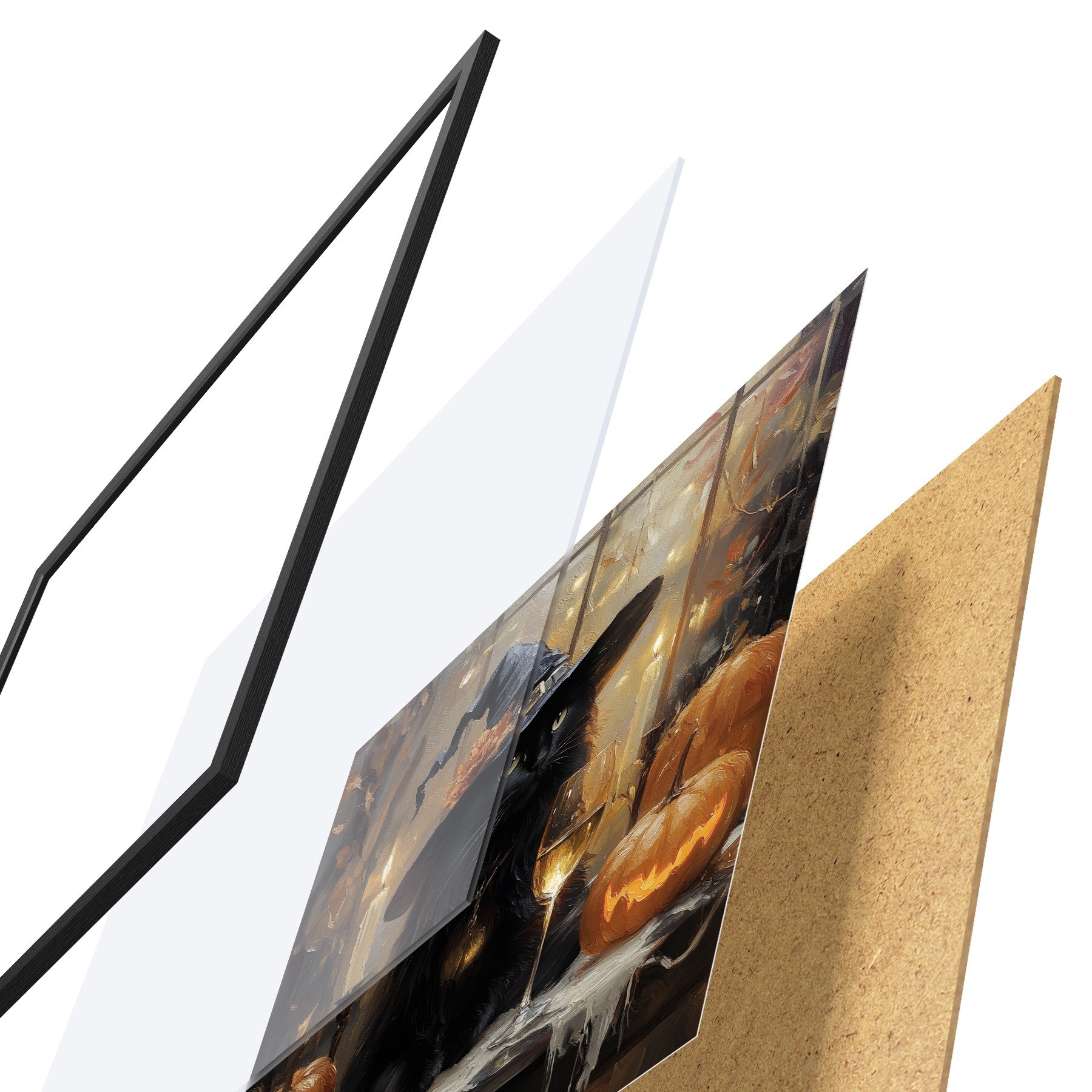 Plakāts sastāv no rāmja, pleksstikla, iespiestā attēla un skaidu plātnes pamatnes. Plakātu var uzreiz piekarināt pie sienas, pateicoties aizmugurē esošajiem stiprinājumiem.