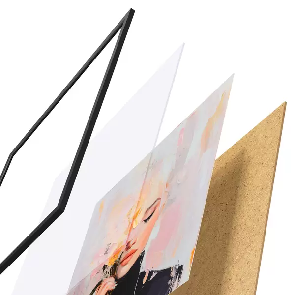 Plakāts sastāv no rāmja, pleksstikla, iespiestā attēla un skaidu plātnes pamatnes. Plakātu var uzreiz piekarināt pie sienas, pateicoties aizmugurē esošajiem stiprinājumiem.