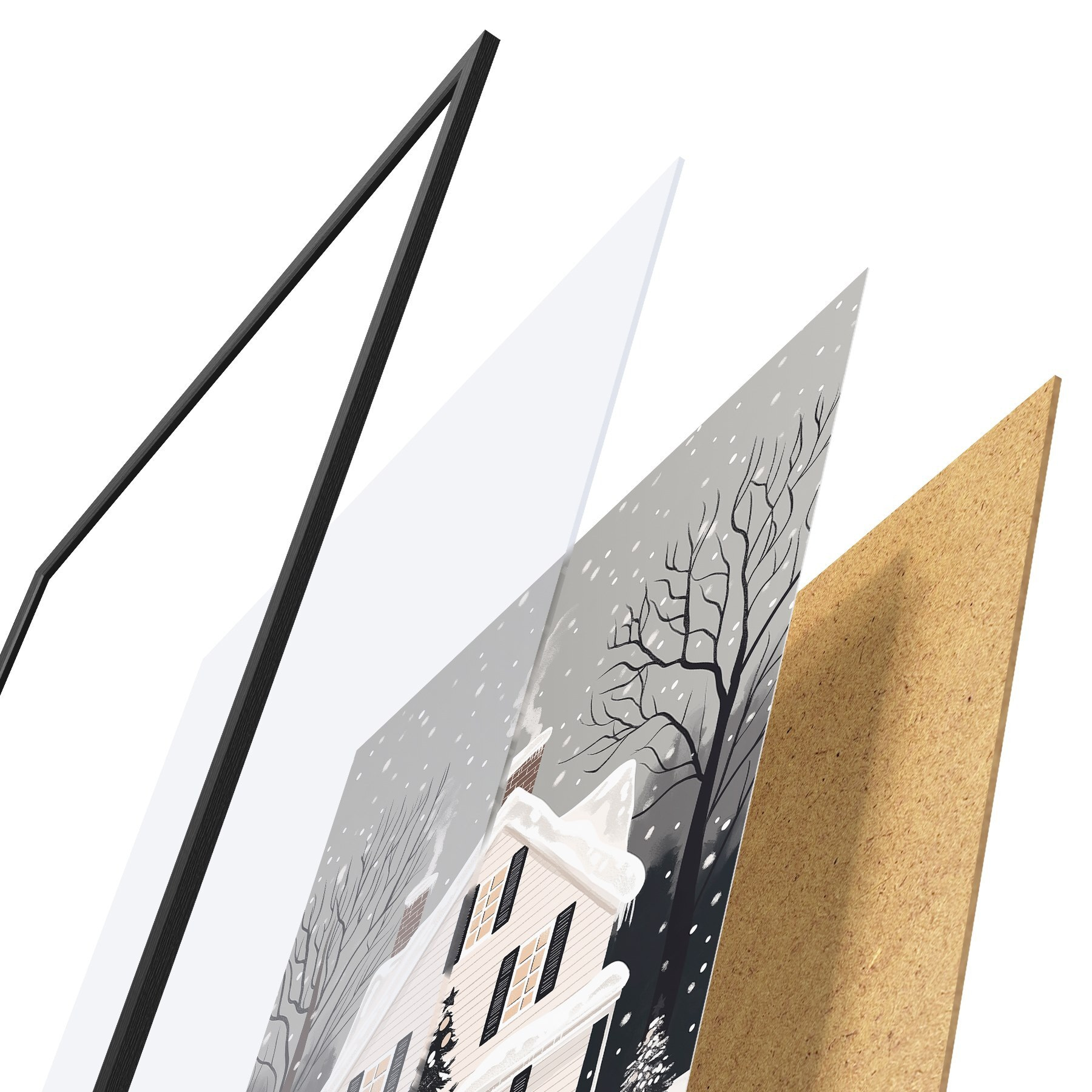 Plakāts sastāv no rāmja, pleksstikla, iespiestā attēla un skaidu plātnes pamatnes. Plakātu var uzreiz piekarināt pie sienas, pateicoties aizmugurē esošajiem stiprinājumiem.