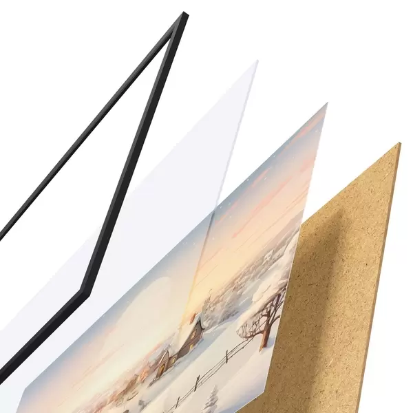 Plakāts sastāv no rāmja, pleksstikla, iespiestā attēla un skaidu plātnes pamatnes. Plakātu var uzreiz piekarināt pie sienas, pateicoties aizmugurē esošajiem stiprinājumiem.