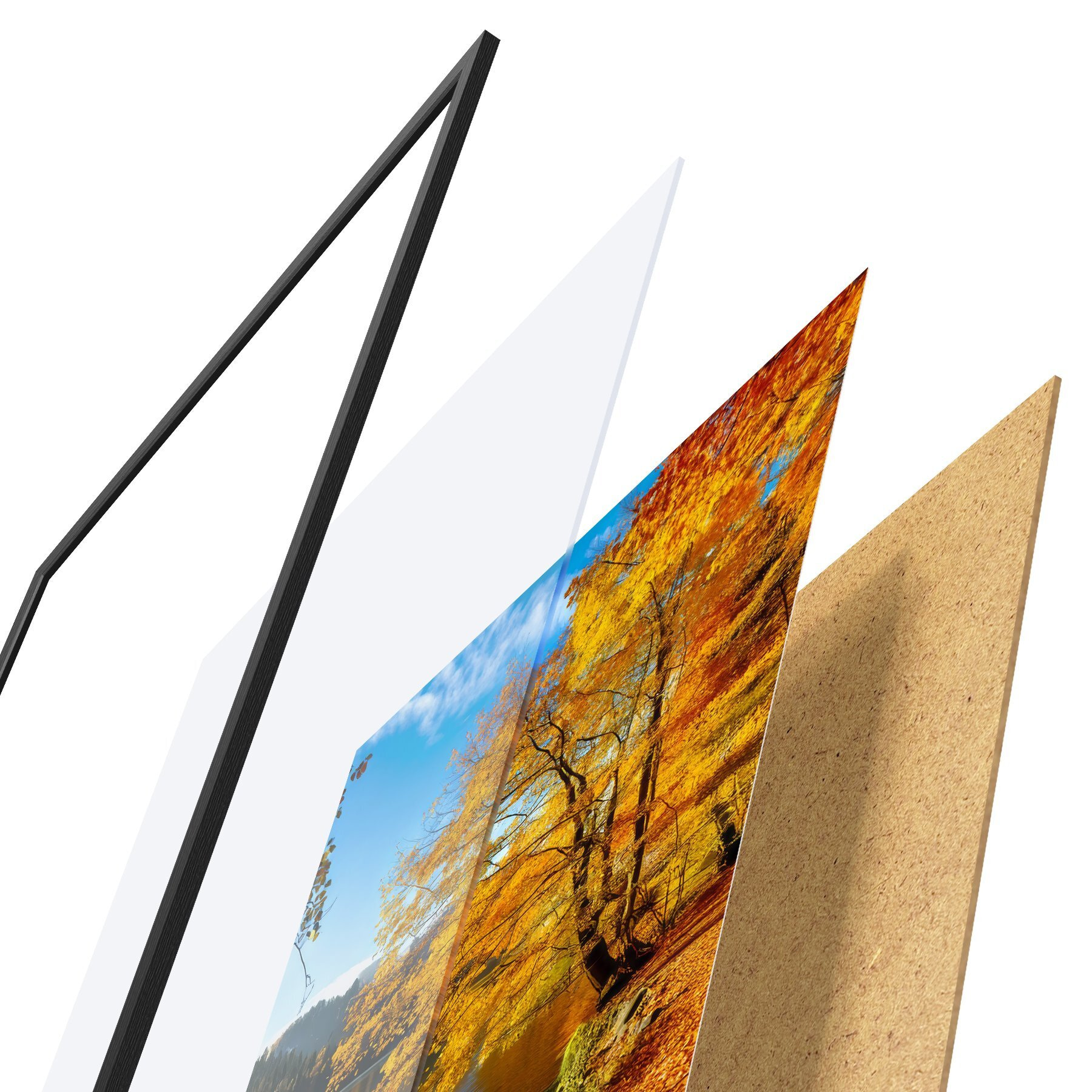 Plakāts sastāv no rāmja, pleksstikla, iespiestā attēla un skaidu plātnes pamatnes. Plakātu var uzreiz piekarināt pie sienas, pateicoties aizmugurē esošajiem stiprinājumiem.