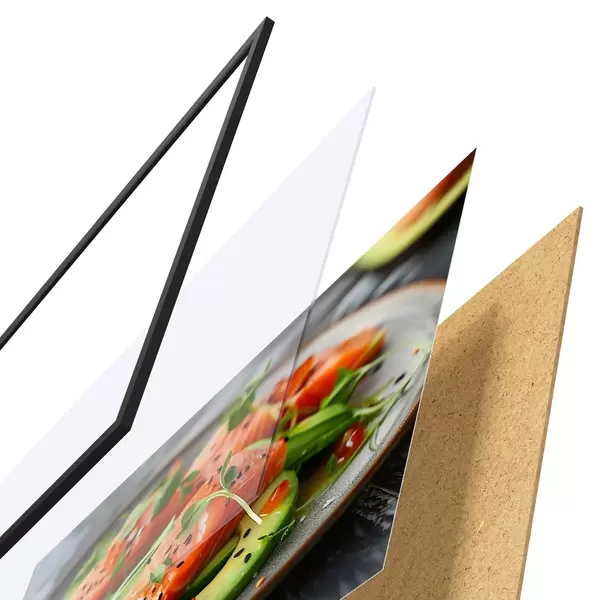Plakāts sastāv no rāmja, pleksstikla, iespiestā attēla un skaidu plātnes pamatnes. Plakātu var uzreiz piekarināt pie sienas, pateicoties aizmugurē esošajiem stiprinājumiem.