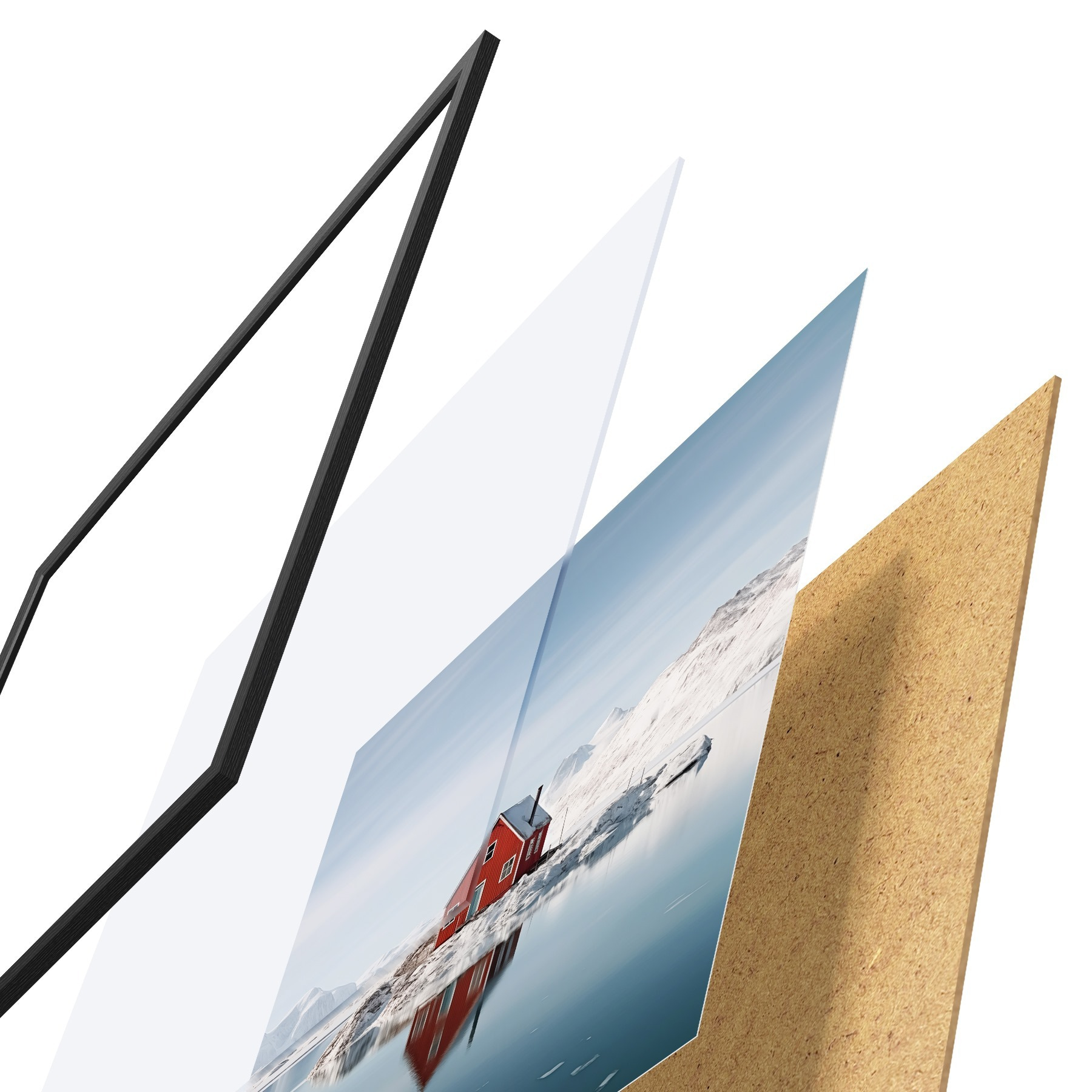 Plakāts sastāv no rāmja, pleksstikla, iespiestā attēla un skaidu plātnes pamatnes. Plakātu var uzreiz piekarināt pie sienas, pateicoties aizmugurē esošajiem stiprinājumiem.
